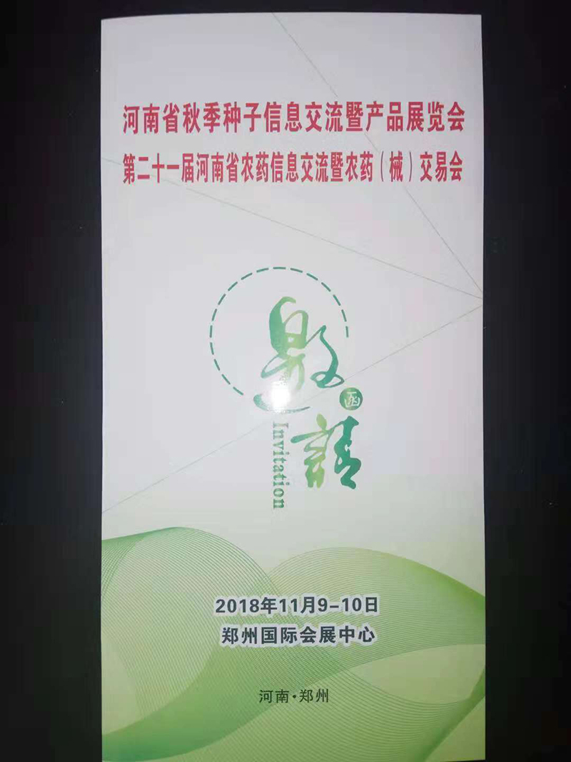 新鄉(xiāng)四方包裝機械有限公司邀請您一起參加將于11月8-9日在鄭州國際會展中心召開舉辦的2018河南省秋季種子信息交流暨產(chǎn)品展覽會以及第二十一屆河南省農(nóng)藥信息交流暨農(nóng)藥(械)交易會。本公司在C館,展位號為W31。真誠邀請大家光臨我展位參觀指導,感受四方不斷推出的新品,并期待各位領(lǐng)導一如既往的支持。